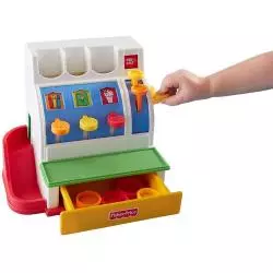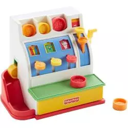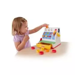Zainspirowana klasyczną zabawką z 1975 r. Kasa sklepowa Fisher-Price pomaga uczyć dzieci liczenia, cyferek i kolorów. W zestawie z tą zabawkową kasą znajdziesz także plastikowe monety, którymi maluch może „płacić”. Zapraszam do kasy! Gdy mali sklepikarze przekręcą dźwignię, zabrzęczy dzwoneczek i otworzy się szufladka! Jeśli maluch chce wydać resztę, może nacisnąć przycisk, a monety potoczą się po rampie z boku kasy.