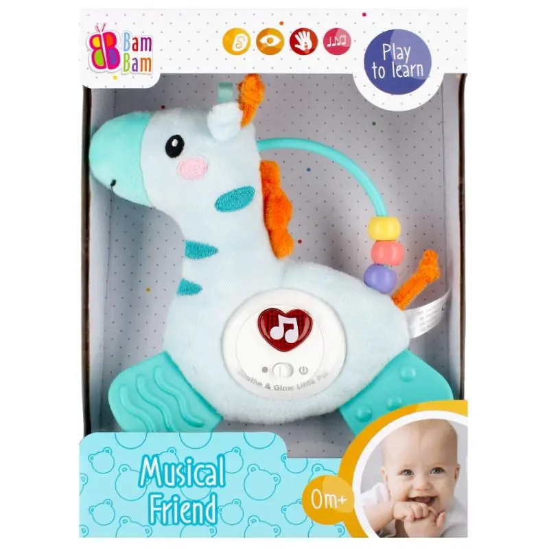 Interaktywna Muzyczna Żyrafka to zabawka spełniająca aż 4 funkcję- przywieszki, maskotki, gryzaka oraz pozytywki, na każdy etap rozwoju dziecka. Zróżnicowana faktura i materiały, w tym ruchome elementy oraz mrugające przyciski, wygrywające melodie, dostarczają szeregu bodźców, aktywizując wszechstronny rozwój dziecka, począwszy od zmysłów