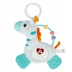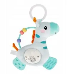 Interaktywna Muzyczna Żyrafka to zabawka spełniająca aż 4 funkcję- przywieszki, maskotki, gryzaka oraz pozytywki, na każdy etap rozwoju dziecka. Zróżnicowana faktura i materiały, w tym ruchome elementy oraz mrugające przyciski, wygrywające melodie, dostarczają szeregu bodźców, aktywizując wszechstronny rozwój dziecka, począwszy od zmysłów poprzez zdolności manualne, motoryczne oraz percepcję i wyobraźnię. Na półokręgu na grzbiecie zebry nawleczone są 4 kolorowe kółeczka, ktore przy potrząsaniu wydają delikatne, grzechoczące dźwięki. Dodatkowo w zestawie znajduje się okrąg, dzięki któremu można zawiesić zabawkę na ramie łóżka. Wymiary/waga/baterie wymiary produktu dł. x wys. x gł. cm 17x19x4, wymiary opakowania dł. x wys. x gł. cm 18x25x8, waga produktu bez opakowania kg 0,10 kg, waga produktu w opakowaniu kg 0,25 kg. Zabawka przeznaczona dla dzieci w wieku 0 m-ca. Wymaga zasilania bateriami 3 x AG13LR44- załączno do zestawu. Zestaw pakowany w kartonik z okienkiem.