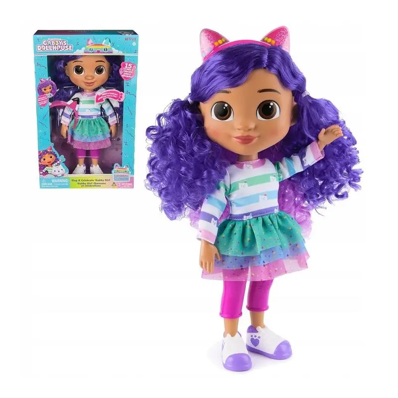 Gabi ma ponad 30 cm wzrostu, co czyni ją idealną towarzyszką zabaw i drzemek. Ściśnij jej klatkę piersiową, aby usłyszeć efekty dźwiękowe z serialu i przeżyć ekscytujące przygody podczas zabawy! Zabawki z serii Koci Domek Gabi dla dziewczynek i chłopców to świetny prezent dla dzieci, które są fanami przebojowego serialu Netflix i lubią tworzyć wymyślane przygody w domku dla lalek.