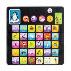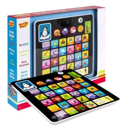 Smily Tablet wspomaga kreatywność, uczy samodzielności. Wesołe dźwięki, kolorowe przyciski oraz światełko zachęcają do działania. Wspomagają naukę głoskowania zgodnie z zasadami nauczania.