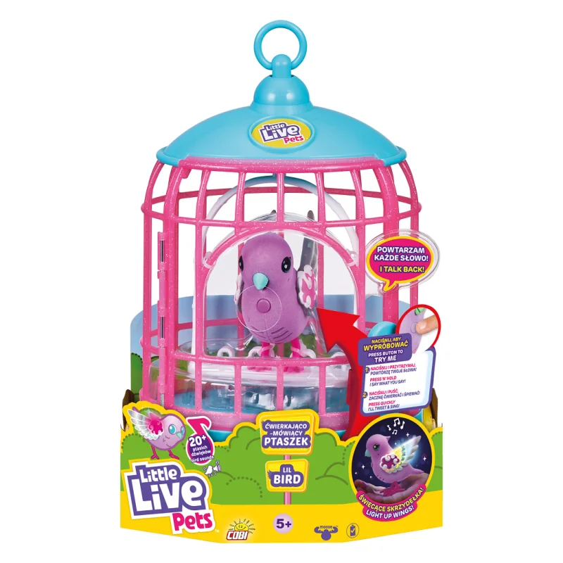Zaproście ćwierkająco-mówiącego ptaszka z klatką z serii Little Live Pets od Cobi do swojego domu. Kolorowe, interaktywne zwierzątka to wyjątkowe zabawki, które