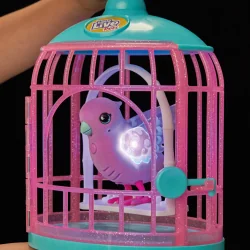 Poznajcie ćwierkająco-mówiącego ptaszka z klatką z serii Little Live Pets. Sympatyczna zabawka rozweseli wesołym śpiewem i oczaruje świecącymi w ciemności skrzydełkami.