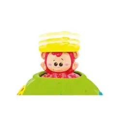Ruchome elementy, które można naciskać, obracać i przesuwać, angażują dłonie i paluszki dziecka. W ten sposób zabawka wspomaga rozwój małej motoryki i koordynacji oko–ręka.