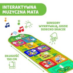 Najnowsza wersja gry w klasy to rozkładana elektroniczna, niesamowicie kolorowa mata z 10 polami, na które, rzuciwszy uprzednio krążkiem, trzeba wskoczyć, by go podnieść. Pól jest 10, co pomaga dziecku w nauce liczenia i zapamiętywaniu kolejnych liczb. Wymalowane na macie dekoracje nawiązują do dyscyplin sportowych, które prezentują urocze zwierzątka. Dziecko może skakać po macie, słuchając zabawnych dźwięków aktywowanych poprzez nacisk i ruch na każdym polu, i bawić się, wybierając jeden z dwóch możliwych trybów zabawy.Tryb dobieramy stosownie do wieku i umiejętności dziecka.