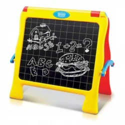 - Odpowiedź: Tablica 4w1 Smily Play umożliwia pisanie kredą, rysowanie markerem, przyczepianie liter i cyfr magnetycznych oraz naukę liter i liczb w formie zabawy edukacyjnej.