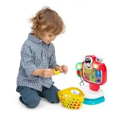 Zestaw Chicco Baby Market umożliwia dzieciom wcielanie się w rolę sprzedawcy lub klienta. Maluch może ważyć produkty, skanować je, słuchać komunikatów głosowych oraz korzystać z tablicy dotykowej. Zabawka uczy liczenia, alfabetu i kolorów, wspierając rozwój poznawczy i językowy.
