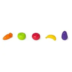 - Dwujęzyczna zabawka PL/EN – dziecko poznaje słówka, kolory, nazwy owoców i warzyw w dwóch językach.
