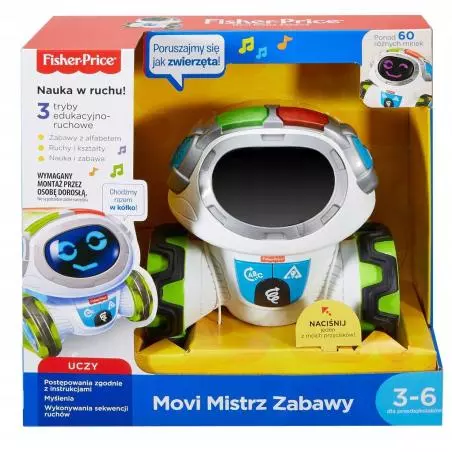 Poznajcie ciekawskiego i wszędobylskiego robota od Fisher Price! Movi to zabawka, dzięki której dzieci będą nie tylko spędzać czas na ekscytujących aktywnościach, ale także będą ćwiczyć swoje umiejętności krytycznego myślenia! Dzięki trzem trybom do wyboru pociecha nie znudzi się i będzie mogła naprzemiennie wybierać każdy z nich - radosne, dzikie tańce i naśladowanie zwierząt przeplatane z treściami edukacyjnymi! Dodatkowo radosny robot posiada ponad 60 różnych minek, co może być też doskonałym pretekstem do rozmów na temat emocji.