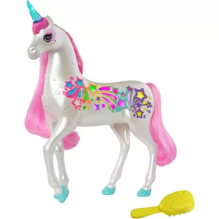 Szczotkuj grzywę jednorożca dołączoną do zabawki szczotką, a jej „magiczne” moce aktywują pokaz światełek i dźwięki.
