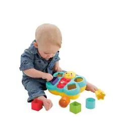 Temu wesołemu motylkowi towarzyszy sześć kolorowych klocków o różnych kształtach do zabawy w sortowanie! Nawet malutkie dziecko potrafi zdjąć pokrywę, aby bawić się we wkładanie i wyjmowanie. Kiedy dziecko podrośnie, wkładanie klocków przez odpowiednie otwory w pokrywie pomoże mu rozwijać zręczność oraz koordynację wzrokowo-manualną. To także świetny sposób na wprowadzanie dziecka w świat kształtów i kolorów!