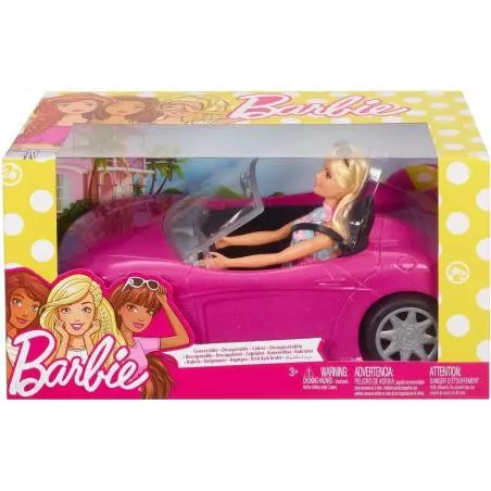 Lalka Barbie jest gotowa do drogi w swoim różowym kabriolecie! Ten sportowy dwuosobowy samochód bez dachu ma obracające się koła, więc wystarczy go lekko popchnąć, aby rozpocząć zabawę. Różowy lakier, srebrne felgi, lusterka boczne i czarne siedzenia z pasami bezpieczeństwa sprawiają, że z przyjemnością wyruszysz w każdą fascynującą podróż. Zawsze modna lalka Barbie jest ubrana w kwiecistą kolorową sukienkę i różowe buty. Jej stylizacja świetnie pasuje do tego auta! Modne okulary przeciwsłoneczne to niezbędny dodatek dla tej modnej podróżniczki. Wyrusz w podróż po miejskiej dżungli, zabierz przyjaciółkę na zakupy lub ciesz się przygodą z wiatrem we włosach! Z Barbie możesz być kim chcesz!