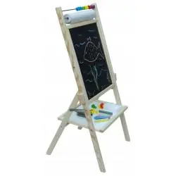 Duża, drewniana tablica edukacyjna to wszechstronna pomoc dydaktyczna, która łączy aż 5 funkcji w jednym produkcie. Tablica oferuje dwustronną powierzchnię: jedna strona służy do pisania markerem suchościeralnym, druga to klasyczna tablica kredowa.
