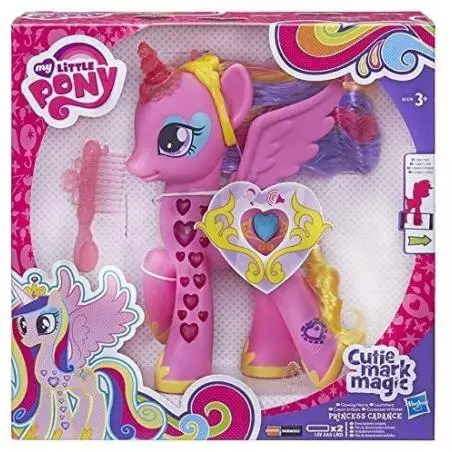 Księżniczka Cadance ta opiekuńcza księżniczka promieniująca dobrocią serca! Księżniczka Cadance od zawsze była troskliwa, a teraz jej serce emanuje prawdziwym dobrem. Ten niesamowity kucyk ma piękne tęczowe włosy, ogon, który można stylizować za pomocą dołączonego grzebienia oraz róg, który można dekorować. Dodatkowo posiada piękne kucykowe znaczki w kształcie serca, które naprawdę świecą!