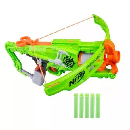 Kiedy zombie rosną w siłę, ich pogromcy muszą się zjednoczyć i tworzyć co raz to skuteczniejsze rodzaje broni. Odeprzyj atak hord zombie z nową kuszą Outbreaker. Wyrzutnia posiada obrotowy bębenek, który może pomieścić do 5 strzałek Zombie. Napnij cięciwę, wymierz w cel i pociągnij za spust, aby wystrzelić na pole bitwy jedną strzałkę.