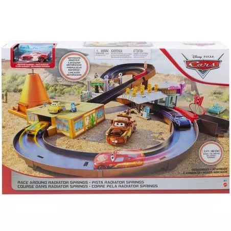 Wjedź do akcji z tym fantastycznym zestawem do zabawy Wyścig wokół Chłodnicy Górskiej. Zestaw torów w kształcie ósemki jest pełen miejsc znanych z filmu oraz akcesoriów sprawiających, że zabawa jest jeszcze lepsza. Przejedź przez tunel w Motelu Sally, aby zwiększyć prędkość. Wjedź na obrotowy podnośnik u Romana, by „odświeżyć”