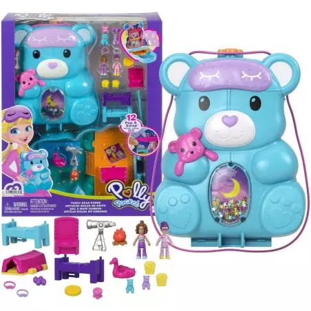 Zestaw Polly Pocket Torebka Miś, schowany jest w kompaktowym pudełku, który ma regulowany pasek ułatwiający przenoszenie, dzięki czemu można ze sobą wszędzie go zabrać! Zestaw wykonany w kształcie misia z ruchomym brokatem w brzuszku, jest niezwykle kolorowy i uroczy. W środku misia znajduje się różne obszary do zabawy i tworzenia wspaniałych historii. Zestaw zawiera 16 akcesoriów oraz dwie laleczki.