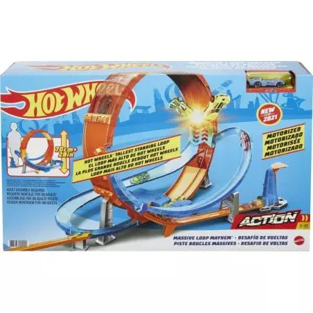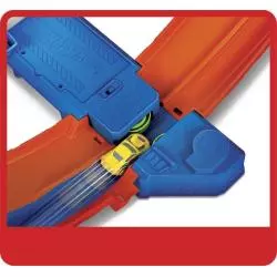 Ten niesamowity tor ma pętlę o wysokości ok. 70.0 cm zaprojektowaną do zabawy kilkoma samochodzikami - pojazdy śmigają po pętli i o włos unikają zderzeń.