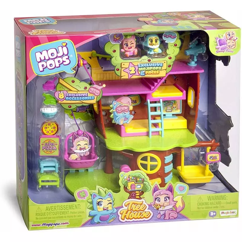Dzień w domku na drzewie to wspaniała przygoda! Twoje MojiPops mogą urządzić piknik, obejrzeć film jedząc popcorn, pohuśtać się, popatrzeć na gwiazdy przez teleskop... A gdy zapadnie wieczór, czekają na nie wygodne łóżeczka. Zdecyduj, jakie emocje przeżywają MojiPops, obracaj ich buzie lub wymieniaj minki z innymi MojiPops! Jest tyle zabawnych rzeczy do zrobienia!