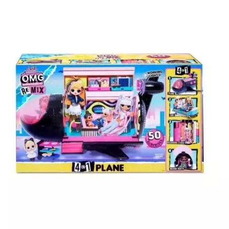 L.O.L. SURPRISE - Samolot 4w1 zawiera ponad 50 niespodzianek! Podróżuj w wielkim stylu razem ze swoimi odlotowymi laleczkami LOL Surprise i O.M.G. Teraz Twoje lale mogą wyruszyć w odjechaną, muzyczną podróż i przeżyć niezapomniane przygody. Zestaw, dzięki transformacji, daje możliwość zabawy samolotem, pojazdem, studiem nagrań lub budką DJ-a. Odkrywaj mnóstwo akcesoriów i baw się w stylu Remix!