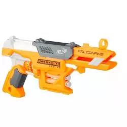 Nerf FalconFire to wyrzutnia z nowe serii Accustrike która wykorzystuje nowe bardziej celne strzałki z charakterystyczną świdrową końcówką (wyrzutnia może też korzystać z klasycznych strzałek Elite). Wyrzutnia jest bardzo prosta w obsłudze. By wystrzelić wystarczy otworzyć komorę magazynku, załadować strzałkę. zamknąć magazynek i nacisnąć spust. Pod lufą znajduje się miejsce na dodatkowe dwie strzałki oraz szyna taktyczna na dodatki. Całość dopełnia futurystyczny i przykuwający uwagę design serii Accustrike. Ponadto w zestawie z wyrzutnią otrzymujemy 6 strzałek typu Accustrike.