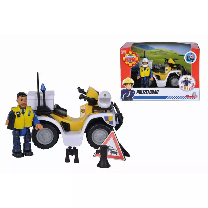 Policjant Malcolm może błyskawicznie odpowiedzieć na wezwanie pomocy swoim policyjnym quadem! Biały quad posiada niebieskie i żółte dekoracje w formie naklejek. Pojazd jest wiernym odwzorowaniem pierwowzoru z bajki.