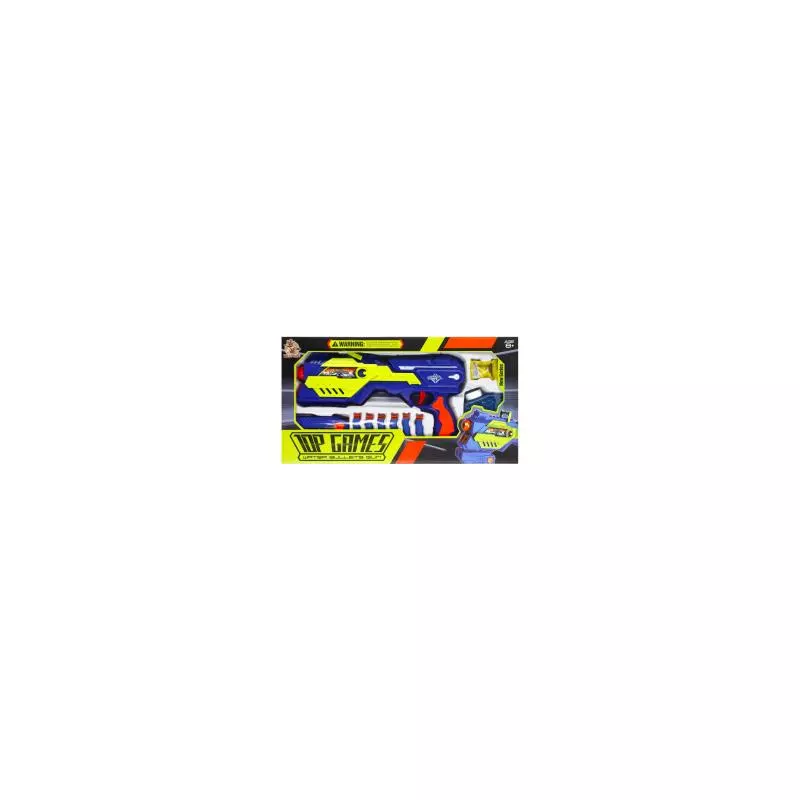 Pistolet lekki i wygodny w trzymaniu, miękkie i nie szkodliwe pociski piankowe, strzałki należy umieścić w magazynku a po naciśnięciu spustu pocisk wystrzeliwuje z pistoletu.