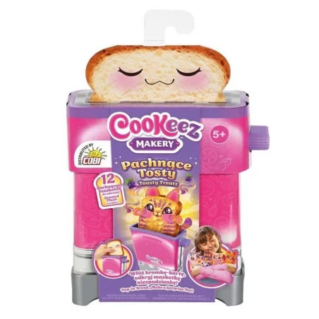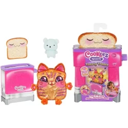 Który niespodziewany pluszowy przyjaciel wyskoczy z tostera Cookeez Makery Toasty Treatz? Twoje dziecko nie uwierzy, jaki słodko pachnący smakołyk zaraz spotka! Najpierw włóż chleb do gniazda tostera, a następnie przesuń uchwyt tostera w dół. Teraz przesuń uchwyt z powrotem do góry, aby odsłonić najsłodszego niespodziankowego pluszowego