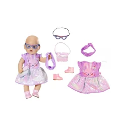 BABY born Deluxe Happy Birthday Outfit 43cm z sukienką, opaską i butami. Zawiera stylową maskę i torebkę.