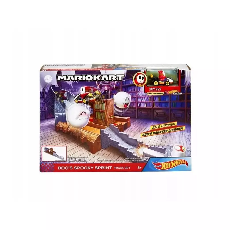 Każdy zestaw zawiera przeciwnika oraz replikę metalowego pojazdu Mario Kart, którym dzieci pokonują przeszkody i stawiają czoła wyzwaniom – podobnie jak w grze, ale tym razem na torze Hot Wheels! Utrzymanie się na torze to klucz do bycia najszybszym zawodnikiem!