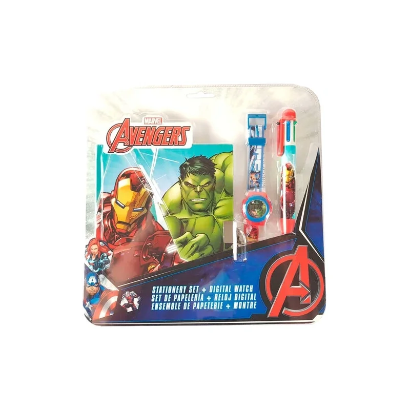 Zestaw Avengers z cyfrowym zegarkiem, długopisem i pamiętnikiem to wyjątkowo atrakcyjny zestaw prezentowy dla Twojego dziecka.