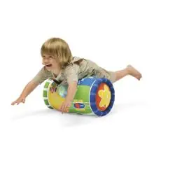 Nadmuchiwany, muzyczny walec stanowi odpowiedź na naturalną potrzebę ruchu dziecka. Wciskając przycisk odtwarzane są wesołe melodie, które pomagają maluchowi rozwinąć poczucie rytmu oraz muzykalność. Ponadto 5 kolorowych kulek umieszczonych w zabawce porusza się zabawnie grzechocząc.