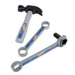 Zestaw narzędzi Hot Wheels to marzenie każdego młodego majsterkowicza. Poczuj się jak prawdziwy mechanik! Wiertarka ma opcję wiercenia za pomocą przycisku. Zestaw zawiera: wiertarka, klucz nastawny, 2 klucze francuskie, młotek, śrubokręt, 2 deseczki, nożyk do tapet, oraz śrubka. Materiał: plastik. Wymiary opakowania: 29 x 30,5 x 8 cm Zestaw nie wymaga baterii. Wiek: 3+