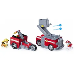 Rozpocznij przygody w specjalnym pojeździe ratunkowym. Te wyjątkowe pojazdy Psiego Patrolu otwierają się, przekształcając w pełen akcji zestaw! Umieść figurkę Szczeniaka w centrum kontroli misji i załaduj pociski do wyrzutni. Pojazd można rozdzielić tworząc dwa oddzielne. Po rozdzieleniu otrzymamy motocykl z hakiem oraz pojazd z wyrzutnią. Kiedy złożysz zestaw umieść szczeniaka na siedzeniu kierowcy i ruszaj na kolejną przygodę!