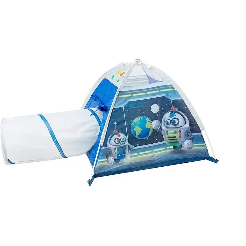 Do wnętrza namiotu prowadzą tunel lub zamykane wejście, dzięki czemu są dwie możliwości wkroczenia do magicznego świata zabawy.