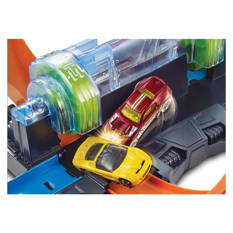 Świetnie wykonany model od kultowej marki Hot Wheels Wyrzutnia dla aut i zapętlony tor dla świetnej zabawy! Wysoka jakość i ładne, żywe kolory!
