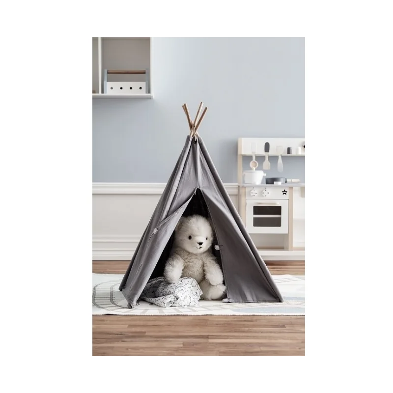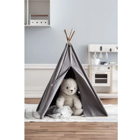 Od dziś każde dziecko może cieszyć się swoim własnym mini domkiem :) Oryginalny design idealnie pasuje do świata zabaw. Wykonany z drewnianego stelaża z rozpiętym na nim bawełnianym materiale z okienkiem, będzie również oryginalną dekoracją wnętrza. Lekki niewielkich rozmiarów namiot będzie idealny domkiem dla ulubionej przytulanki dziecka. Zapakowany w bawełniany worek.