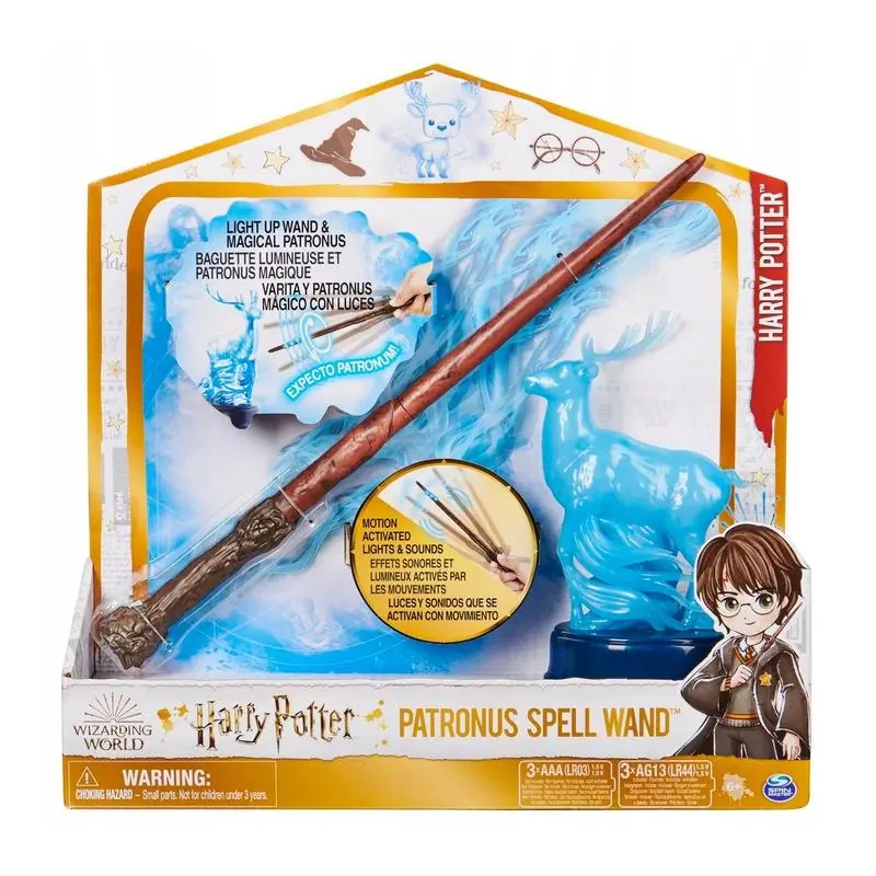 Różdżka Patronus to niezbędny gadżet dla fanów Harry'ego Pottera i doskonały sposób na pobudzenie wyobraźni przez ekscytującą zabawę. Ta czarująca kolekcja zabawek ze świata Harry'ego Pottera to świetny prezent dla dzieci w wieku od lat 6. Różdżka zawiera 3 baterie LR44. Wyczaruj idealne zaklęcie Expecto Patronum dzięki różdżce Wizarding World Harry'ego Pottera!
