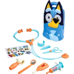 W skład zestawu wchodzi twarda walizka w kształcie ulubionego bohatera, Bluey, oraz dziewięć akcesoriów medycznych, które