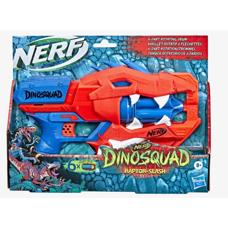 Połącz siły z legendarnymi dinozaurami jako członek elitarnej drużyny DinoSquad! Zawładnij nadzwyczajną siłą największych dinozaurów i przygotuj się na niesamowite przygody! Rzuć się do zaciętej akcji z wyrzutnią NERF Dinosquad Raptor-Slash, która ozdobiona jest wspaniałymi dinozaurzymi elementami i przypomina prawdziwego welociraptora.