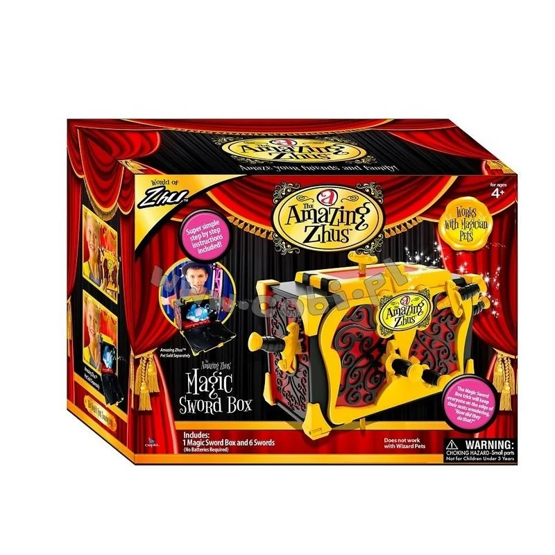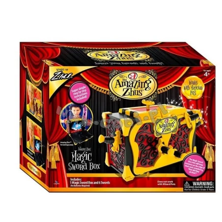 Klasyczny pokaz magiczny! Najbardziej znana na świecie sztuczka. Przygotuj się na magiczną skrzynię z mieczami. Umieść myszkę magik w skrzyni. W odpowiednie otwory wkładaj miecze, aby przeszyły skrzynię. Wszystkie miecze w skrzyni? Ale w środku jest myszka! Teraz wyjmij miecze, wypowiedz zaklęcie i otwórz skrzynię. Myszka magik magicznie