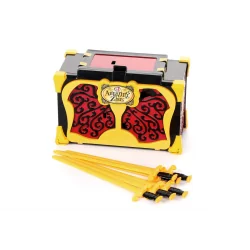 Klasyczny pokaz magiczny! Najbardziej znana na świecie sztuczka. Przygotuj się na magiczną skrzynię z mieczami. Umieść myszkę magik w skrzyni. W odpowiednie otwory wkładaj miecze, aby przeszyły skrzynię. Wszystkie miecze w skrzyni? Ale w środku jest myszka! Teraz wyjmij miecze, wypowiedz zaklęcie i otwórz skrzynię. Myszka magik magicznie przetrwała!