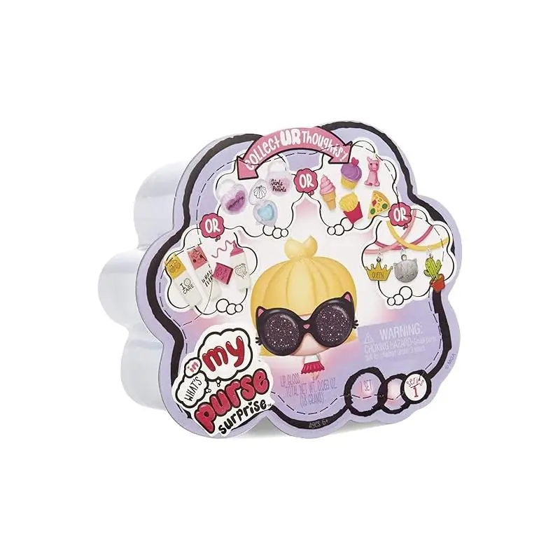 Może zawierać: 5 gumek lub 3 błyszczyki do ust lub 3 bransoletki z zawieszkami lub 3 markery, 1 naklejkę, 1 tajną wiadomość