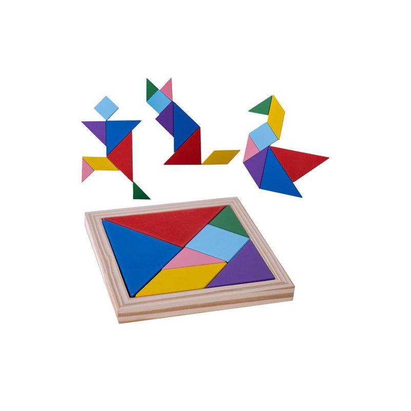 Drewniany Tangram Askato to edukacyjny zestaw do układania dla dzieci i dorosłych. Bezpieczne drewno, precyzyjne wykonanie i uniwersalna zabawa gwarantują godziny twórczej rozrywki, wspierając rozwój intelektualny i manualny.