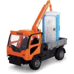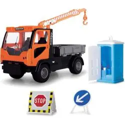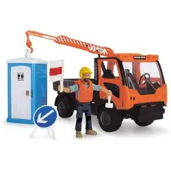 - Realistyczne akcesoria – mobilna toaleta z dźwiękiem, znak ostrzegawczy, flaga, młotek, kask i kamizelka.