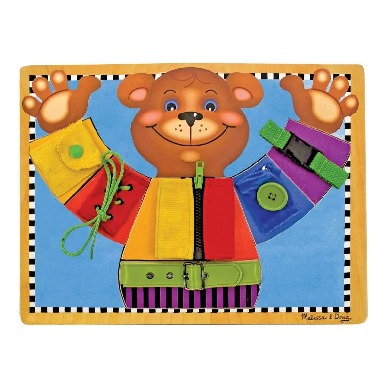 Tablica motoryczna Miś z zamkami od renomowanej marki Melissa & Doug to edukacyjna zabawka drewniana, która rozwija sprawność manualną i logiczne myślenie u dzieci od 3. roku życia. Zaprojektowana w formie sympatycznego misia, tablica zawiera różne rodzaje zamków, zasuwek i zatrzasków – idealnych do trenowania precyzji, cierpliwości i koordynacji ręka–oko.