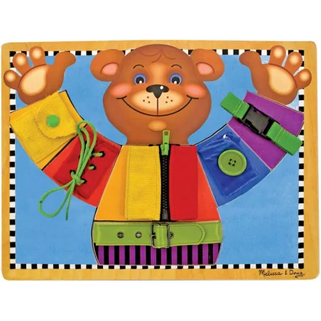 Tablica motoryczna Miś z zamkami od renomowanej marki Melissa & Doug to edukacyjna zabawka drewniana, która rozwija sprawność manualną i logiczne myślenie u dzieci od 3. roku życia. Zaprojektowana w formie sympatycznego misia, tablica zawiera różne rodzaje