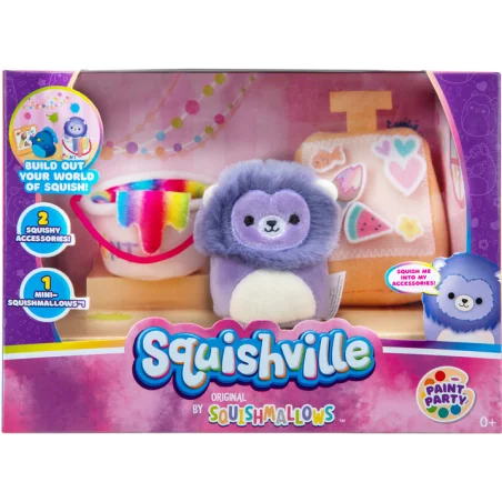 Squishville Squishmallows Paint Party – Maskotka Mini Lew to uroczy zestaw z serii Squishville, stworzony z myślą o kreatywnej zabawie i rozwijaniu wyobraźni dziecka. Mięciutki lew Squishmallows zaprasza do swojej pracowni plastycznej, gdzie czekają farby, pędzle i mnóstwo