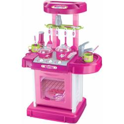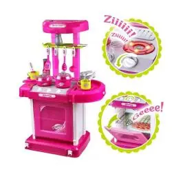 Interaktywna kuchnia dla dzieci w kolorze różowym to wyjątkowa zabawka, która pozwoli każdemu maluchowi poczuć się jak prawdziwy szef kuchni. Wyposażona w piekarnik, kuchenkę indukcyjną, światła i realistyczne dźwięki gotowania oraz smażenia, dostarcza wiele godzin kreatywnej zabawy. Zestaw zamknięty jest w poręcznej walizce, co ułatwia przenoszenie i przechowywanie.