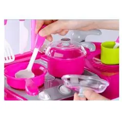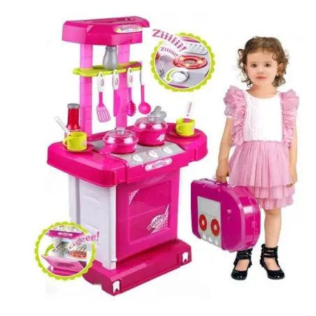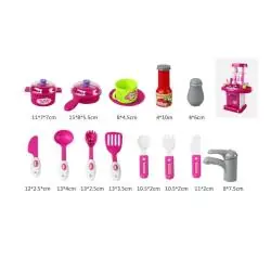 Zestaw kuchenny rozwija wyobraźnię, zdolności manualne i kreatywność dziecka. Uczy współpracy oraz odgrywania ról, pozwala także na naśladowanie dorosłych podczas przygotowywania posiłków. To świetna propozycja na prezent, która dostarczy mnóstwo radości i zabawy.
